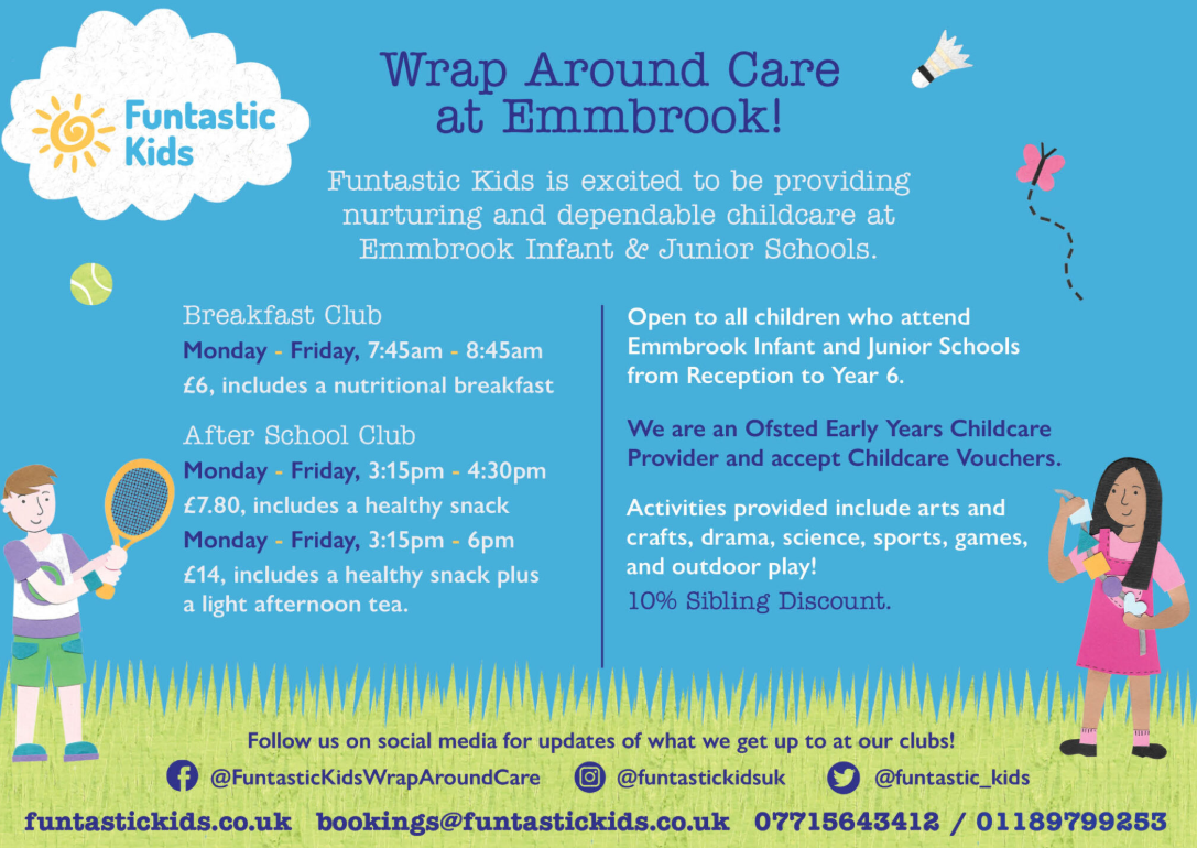 Funtastic Kids is delighted to be able to provide high quality and dependable wrap around childcare for the families of Emmbrook Infant and Junior Schools.